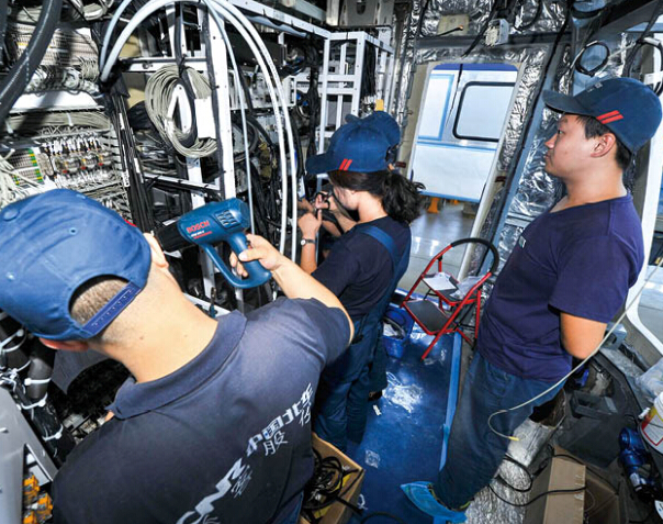 ▲9图:7月9日,北車長客工人在巴西EMU電動車組列車駕駛室內進行裝配作業。