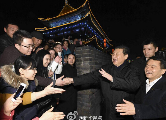 @新华视点:习近平总书记2月15日晚上登上西安古城墙,同市民亲切交流。(新华社记者霍小光、李学仁、李涛)