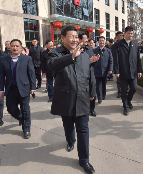 15日中午,习近平来到西安雁塔区电子城街道二〇五所社区看望慰问居民。