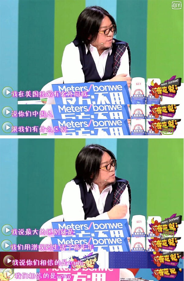 不過,在這期節目的最后時,高曉松老師的另一段話更加引人注意。“我在美國經常有老外問我,說你們中國人和我們的區別是什么,我說最大的區別就是我們用潛規則生活了兩千年,我說你們相信的是truth,我們相信的是norm。你們一切靠嚴格的法律,制度等等,三權要分立,我們世世代代就靠潛規則。這個民族的智慧就來自于這兒。”
