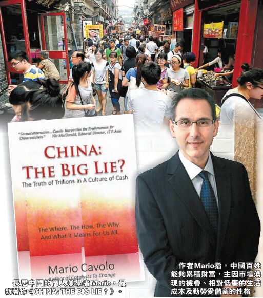 過去30餘年保持超高速增長的中國經濟,在一些西方媒體學者眼中不啻為大謊言。不少觀點認為,過剩的投資和產能、龐大的地方債務及危險的樓市泡沫等因素下,所謂「奇跡般」的中國經濟離崩潰不遠矣。而斯考特公關副總裁Mario Cavolo的著作《China: The Big Lie?》,正意圖反駁「中國經濟崩潰論」。這位長期在中國生活的西方商人和學者,以一種不動聲色的窺探者態度,揭示了普通中國人所掌握的數萬億財富,肯定了中國經濟的靈活性和增長前景。香港商報記者劉思桐