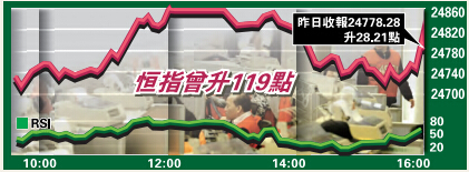 內地股市假后復市,春節后資金緊張情况紓緩,兩會將於下周開幕,基建及國企改革等題材成為市場焦點。港股受藍籌業績不濟拖累,指數表現偏軟,中資股走勢則相對理想。外圍表現強勢,加上憧憬內地政策消息,預期恒指可守24500點水平,后市有望上試25300點阻力。