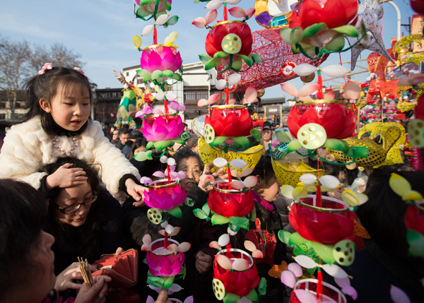 遊客在南京夫子廟景區購買花燈(2月19日攝)。新華社發(蘇陽 攝)