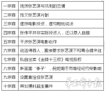 華西都市報記者針對書中首次公開披露張藝謀指責張偉平“10宗罪”的內容,2月26日上午,多次聯系張偉平本人,但電話一直在呼叫轉移中。當華西都市報記者聯系到張偉平的新畫面公司對外宣傳平雪小姐,記者話還沒有說完,她便匆匆把電話掛斷。