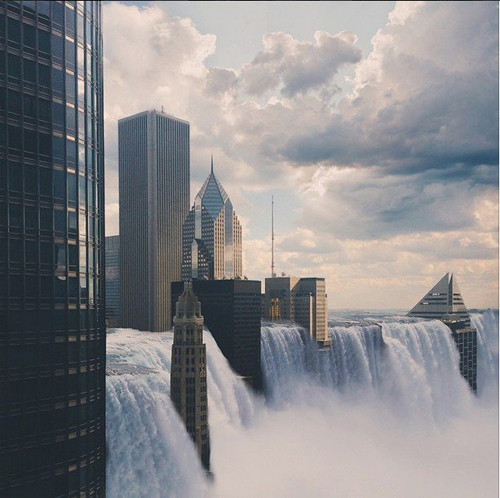 2月26日消息,美國芝加哥90後姑娘Swopes用iPhone6拍攝並用手機app後期合成的作品近日受到關注,世界末日般的紐約和芝加哥,從天而降的巨大瀑布、被海洋淹沒的城市、巨大的月球籠罩天際、扭曲的樓房,無一不給人帶來震撼視覺效果。