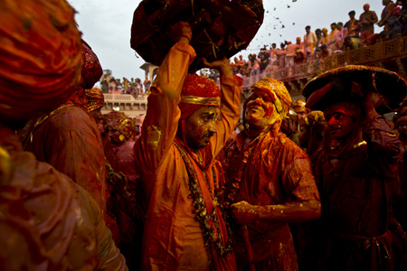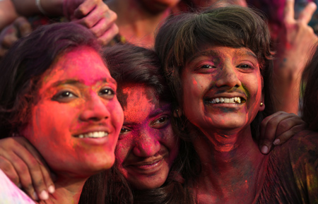 2月28日,在印度楠德冈,印度教教徒在胡里节上狂欢。