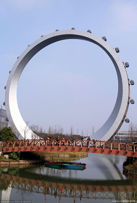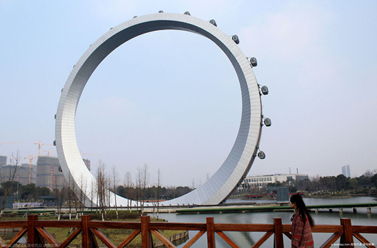 3月1日,位於江蘇常州市區紫荊公園的世界最大無輻式摩天輪完工後長期閒置,開放營運時間遙遙無期。這個無輻式摩天輪設計高度為89米,摩天輪箱梁外側有24個遊藝轎廂,遠看像一枚銀白色的戒指,造價1.5億元,是常州地標性建築。該摩天輪於2009年立項,2013年年底完工,此後卻始終未投入運營。2014年,據多家新聞媒體報導,由於該摩天輪還未通過國家品質技術監督總局有關特種設備的檢測,暫無法投入運營。