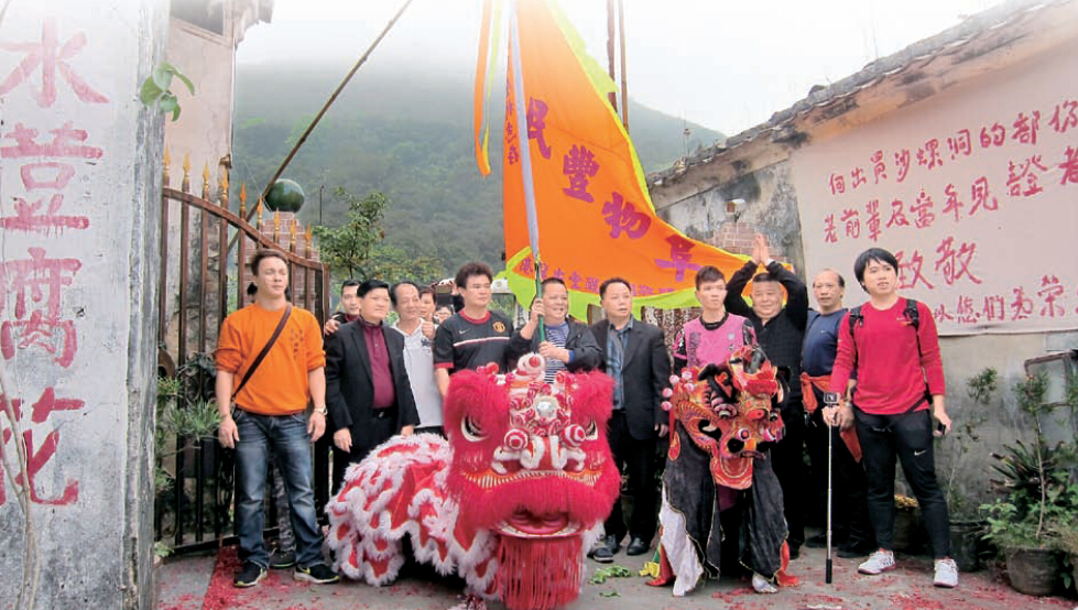 沙螺洞張屋村張記士多正月初三舞獅賀年,村戶門前卻見抗議橫額。