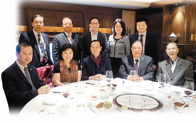 張浚生(前右二)去年來港,劉皇發(前中)設宴款待,座上有前民政事務局常任秘書長李麗娟(前左二),其他鄉議局委員。