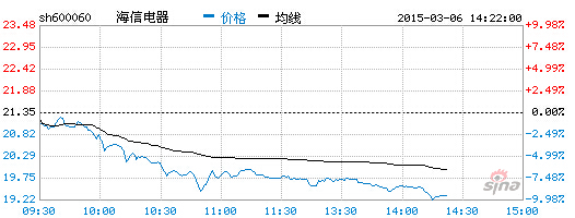 家電行業股大跌,海信電器近跌停,奮達科技(47.05,-3.260,-6.48%)、TCL集團(5.10,-0.270,-5.03%)、數源科技(11.63,-0.550,-4.52%)、日出東方(18.00,-0.520,-2.81%)、兆馳股份(10.10,-0.300,-2.88%)、深康佳A(9.15,-0.050,-0.54%)、四川長虹(5.06,-0.130,-2.50%)、長青集團(34.62,-0.680,-1.93%)等跌幅居前。