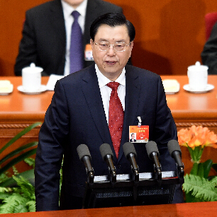 【香港商报讯】两会采访组北京报道:昨午,十二届全国人大三次会议举行第二次全体会议。全国人大常委会委员长张德江向大会作常委会工作报告,其中提到去年8月对香港普选特首作出的决定。他说,全国人大常委会对正确实施基本法和依法推进香港政改负有宪制责任,有必要就特首普选制度的若干核心要素作出决定;人大去年8月作出的决定(「831」决定)为香港普选的具体办法确定了原则、指明了方向。