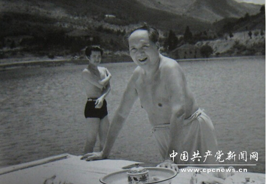 1961年,毛主席在庐山游泳时的照片。