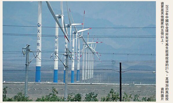 中國即將由全球最大的污染源之一而變成全球清潔能源的領軍者。那麼要如何來實現這樣的轉變?這將是一個巨大的挑戰,與全面調整經濟結構的努力密切相關。但中國政府已經在這方面采取了重大措施。譬如說,2013年中國占全球所有可再生能源投資的21%,其增加的風能是其他國家的五倍以上,太陽能是其他國家的將近兩倍。中國擁有全球最大的風電場裝機容量,它是世界領先的太陽能光伏模塊制造商,其水力發電量超過其他任何一個國家。它還在大力建設新的核電站──通過建造可重覆使用的資產,它將建設期縮短到56個月,下一步的目標是縮短到48個月。歐洲正在努力朝這個方向靠攏。