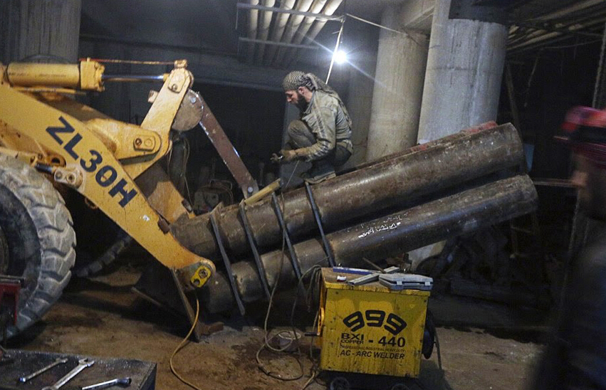 令人惊讶的是叙反对派改造的“火山”土制大炮,竟是在中国徐工造ZL30H型挖掘机上改造而来。
