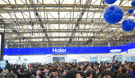 位于W1馆的海尔展台不可谓不霸气,自己占据了接近W1场馆一半的面积,开幕当日的上午,这里的人群熙熙攘攘,密度之高令人咋舌。