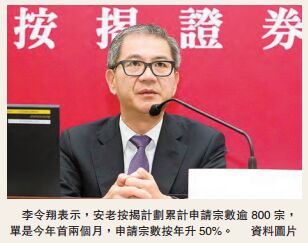 按證公司總裁李令翔表示,由於安老按揭計劃較為復雜,推出初期申請宗數增長較慢;但現時已有所改善,累計申請宗數超過800宗,單是今年首兩個月,申請宗數按年升50%。他表示,優化措施是應市場需求而推出,對擁有多個物業及相連單位的市民可有更彈性安排。他認為申請人支付的各項費用,不會構成財務負擔,因為可以在貸款中滾存,而不須用現金支付。