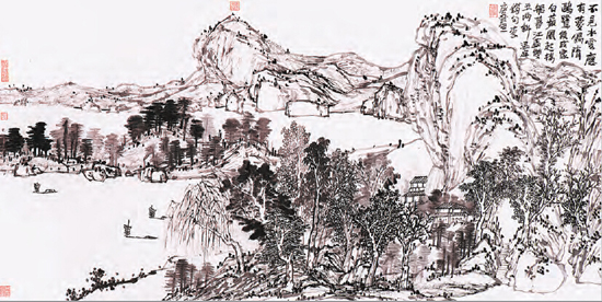 觀馬波生的城市山水題材,在畫家魯慕迅眼中也有著不一樣的感受。他說「波生把城市風景以橫直線為基本結構的特點加以強化,尽量使用橫向和縱向的筆觸,以縱橫所構成的不同方式來分割畫面的空間,再加上建築與環境、線與塊面的明暗、虛實以及章法構圖的手法,這就表現了他特有的繪畫語言。波生曾師從李可染大師,有著堅實的傳統繪畫的根底,而他在現代繪畫形式的探索中,又在不斷地創造新的筆墨形態。」在中國美術出版總社總編輯,人民美術出版社總編輯程大利看來,馬波生通過不斷創新與勤勉的創作發現并表達了別人尚未發現的美。「波生虔誠地對待前人的精華,因此,他得到了傳統藝術無私的賜予。他比別人淌的汗多,跑的路多,所以和周圍畫家們比,他采摘到了別人采摘不到的鮮花,發掘了別人尚沒有發掘出的美。」