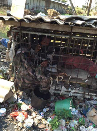 云南网讯(记者李星佺)近日,一位新浪微博名为“周李城”的网友发布微博称,普洱市澜沧县文东乡有一名村民被铁链锁住,关在铁笼子里近两年了。周李城微博附图片显示,确有一名男子被关在了直不起身的铁笼里。此外,铁笼旁还堆满了生活垃圾,男子生存状况令人担忧。