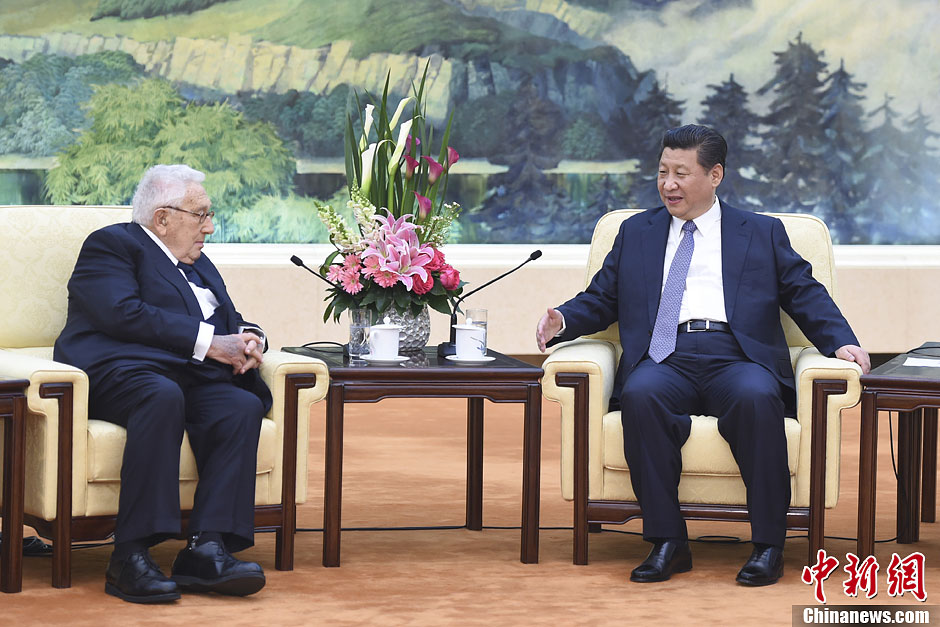 習近平稱贊基辛格是中美關系的開拓者和見證者,贊賞他數十年來為推動中美關系發展作出的重要貢獻。習近平指出,中美關系正取得重要和積極進展。去年11月,我與奧巴馬總統在北京成功會晤,不久前我們再次通話,就中美關系發展作出了規劃。構建中美新型大國關系不僅符合兩國人民根本利益,也有利于亞太地區乃至世界和平、穩定和繁榮。中方高度重視中美關系,愿與美方一道努力,精心呵護兩國關系,落實好雙方達成的共識,加強高層及各層級交往,深化各領域務實合作,推動兩國關系不斷發展。我期待著年內對美國進行國事訪問。