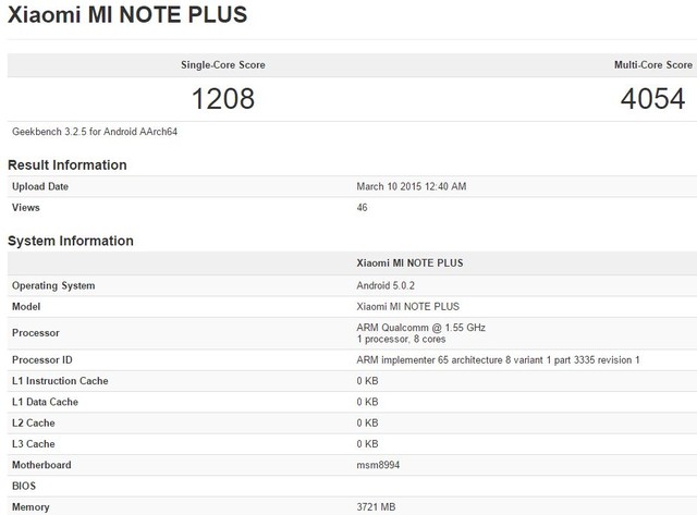 今年1月小米發布了小米Note普版和頂配版(預計3月底上市),而其實小米另外還有一款同樣配置稱得上旗艦的設備——小米Note Plus。最近其現身跑分軟件Geekbench的數據庫中,一起來看。
