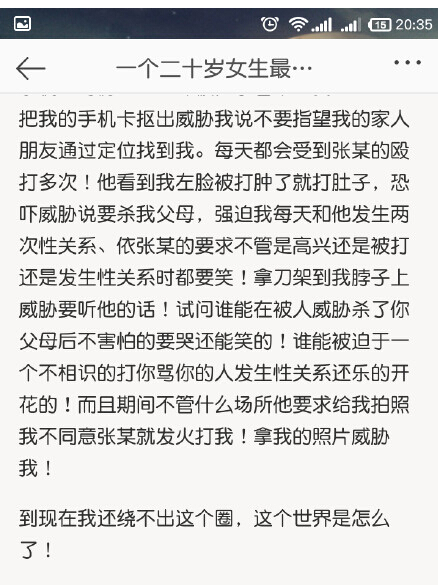 女孩发文控诉自己的遭遇