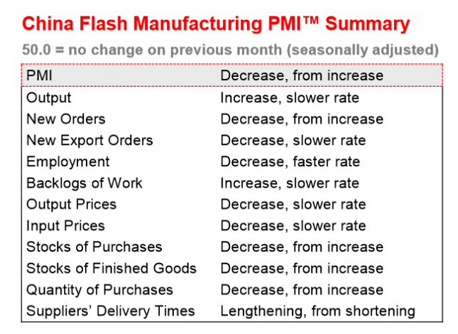 匯豐3月中國制造業PMI初值分項數據如下圖: