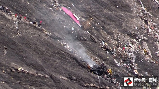 墜毀德國客機殘骸現場照片。(圖片來源:CFP)