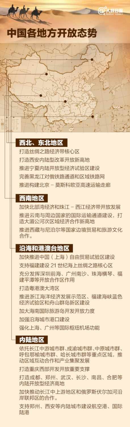 其中,在第六章“中國各地方開放態勢”中,對各省份在“一帶一路”規劃中的定位予以明確。這意味著中國將充分發揮國內各地區比較優勢,全面提升開放型經濟水平,重塑對外開放新格局。