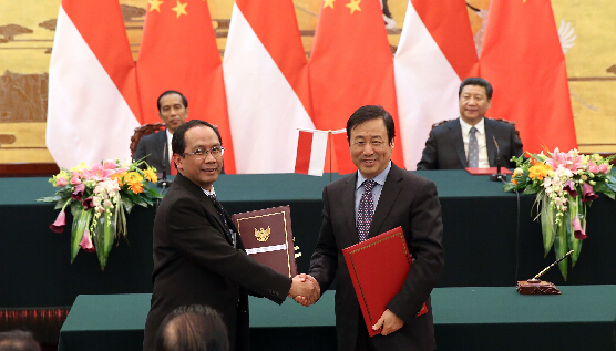 中国国家主席习近平26日在人民大会堂同印度尼西亚总统佐科举行会谈。两国元首共同总结中印尼关系发展取得的成功经验,对两国未来合作作出规划和部署,一致同意在过去65年友好关系发展的基础上,继往开来,共同推动中印尼全面战略伙伴关系在新时期向前发展,为地区和世界和平稳定繁荣作出贡献。