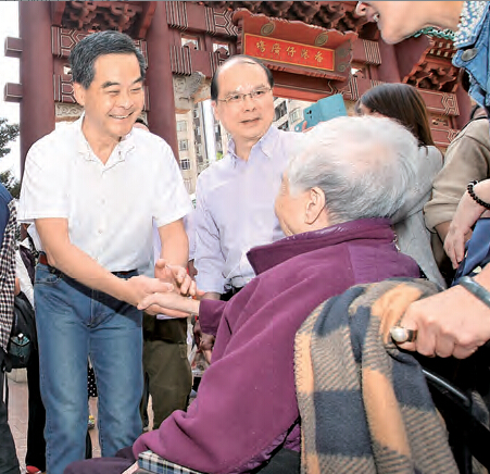 【香港商報網訊】記者戴合聲報道:65歲或以上長者和合資格殘疾人士「2元乘車優惠計劃」,昨日起分階段擴展至綠色專線小巴,涵蓋全港超過八成、共407條路線。昨日早上,行政長官梁振英(CY)罕有地穿上白恤衫及牛仔褲,以耳目一新的親民形象,偕同勞工及福利局局長張建宗一起落區,到香港仔南寧街的專線小巴站視察運作情況。張建宗事后形容,首日運作暢順,長者反應正面。