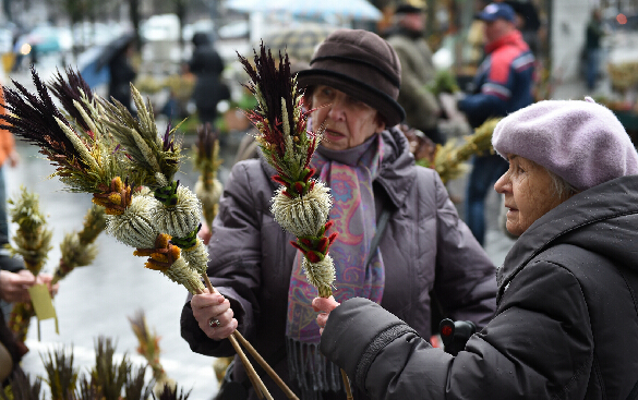 3月29日,在立陶宛首都维尔纽斯,人们购买棕枝制品庆祝棕枝主日。