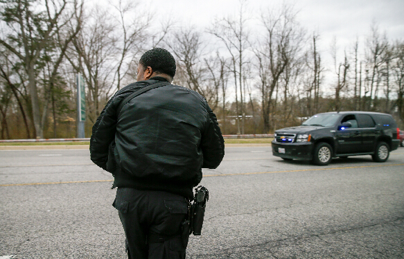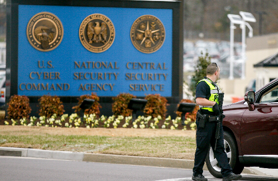 3月30日,在美国马里兰州米德堡,警察在国家安全局总部附近指挥交通。