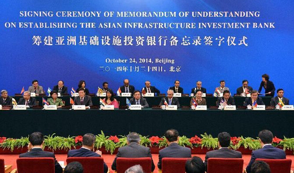 去年十月底,多國簽署亞投行框架備忘錄(圖:新華網)