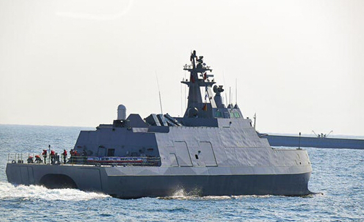 沱江舰船身采不规则状匿踪设计,可使雷达波弹散或减弱,使敌方误以为是小型船。