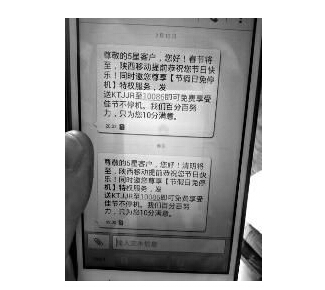 3月30日早上7時16分,還沒有起床的李女士收到陜西移動10086發來的短信,內容為:“尊敬的4星客戶,您好!清明將至,陜西移動提前恭祝您節日快樂!同時邀請您尊享【節假日免停機】特權服務,發送KTJJR至10086即可免費享受佳節不停機......”“竟然收到清明節祝福的短信,這條短信看得人太郁悶了。”李女士說。