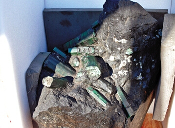 据当地媒体报道,巴伊亚祖母绿被发现时裸露出来的部分有“人腿粗细”。矿工们从来没见过这么大的祖母绿。据悉,巴伊亚祖母绿原矿长1.2米,重量超过380公斤,含有约18万克拉的祖母绿宝石,价值约4亿美元。