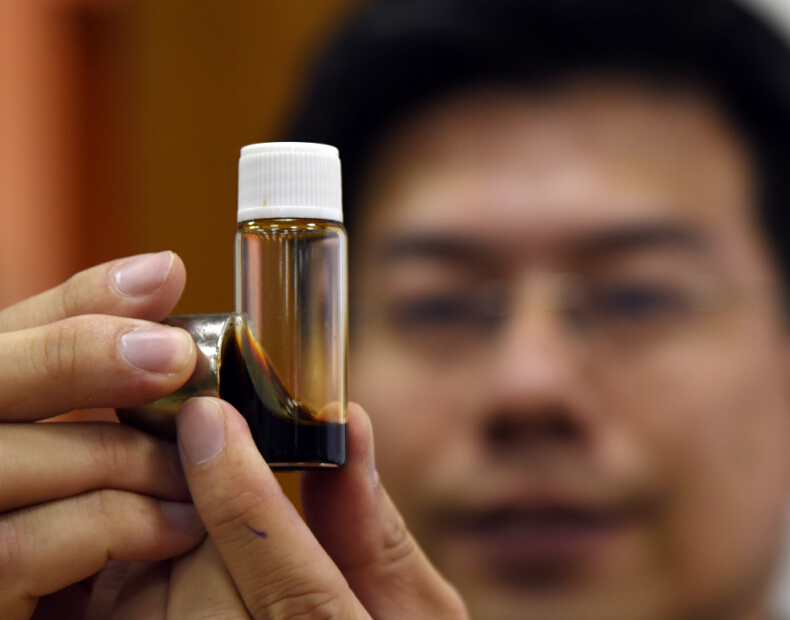 4月2日,台灣師范大學光電科技研究所副教授謝振傑展示做檢測所用到的磁性納米試劑。