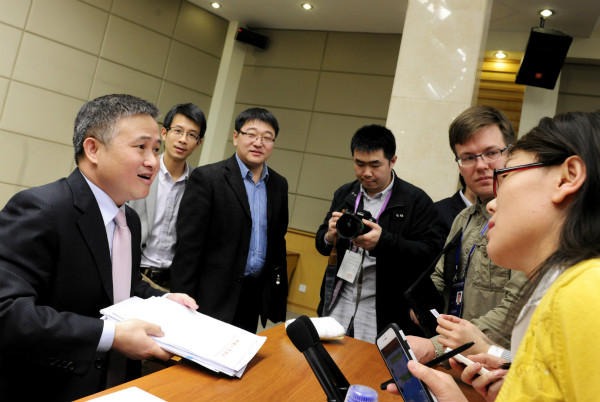 4月3日,财政部副部长王保安、人民银行副行长潘功胜介绍促进社保基金保值增值为经济社会发展助力和存款保险制度建设有关情况。