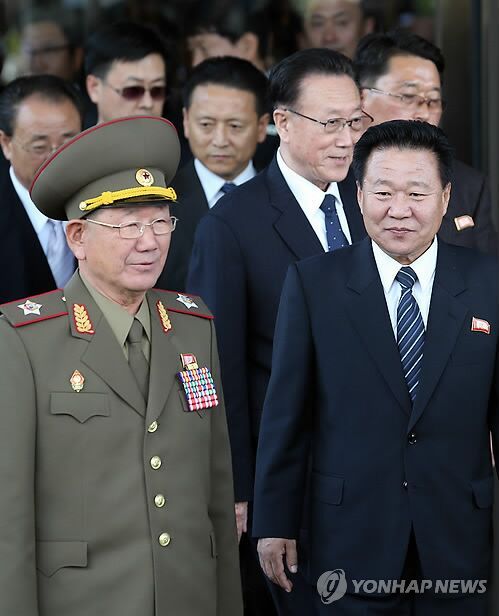 資料圖片:黃炳誓(前排左)和崔龍海(前排右)(韓聯社)