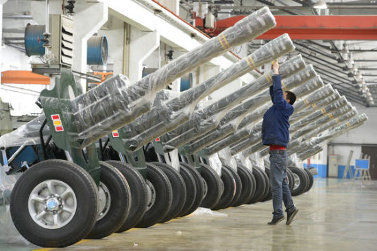 2015年4月9日,山西省太原市,員工正在包裝08式迎賓禮炮。