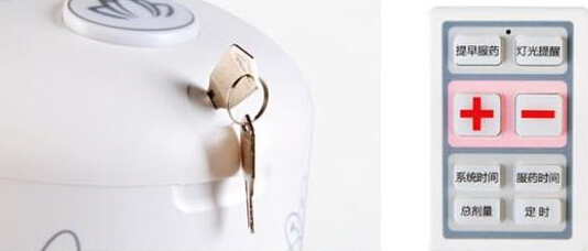 這款智能藥箱能夠將一周需要服用的藥量全部裝在藥杯中,老人只要聽到藥箱的語音或者鈴聲提醒,按一下取藥按鈕,藥箱就能自動推出藥品。