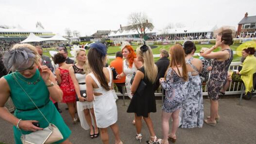 资料图:当地时间4月10日,英国利物浦,安特里赛马场举行英国国家障碍赛马大赛吸引了大量游客。