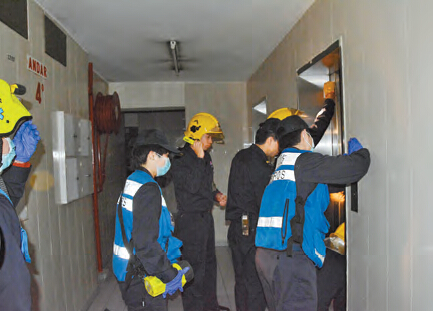 消防人员解救被困电梯的市民