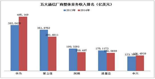 2013年、2014年五大設備廠商收入對比(來自網絡)
