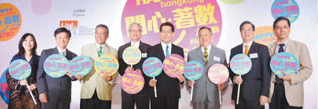 一眾嘉賓于記者會上支持「開心·著數大行動」