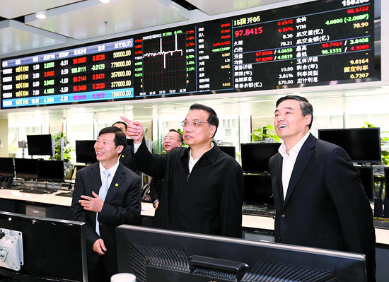 李克強說,要支持金融創新和擴大對外開放。積極發展「互聯網+金融」等新業態,開展股權眾籌融資試點。進一步開展上海自貿區金融開放試點,擇機推出「深港通」,增加境內機構境外發債規模並允許募集資金回流境內使用。同時,要加大不良資產核銷和處置力度,強化金融監管協調,堅決守住不發生區域性系統性金融風險的底線。