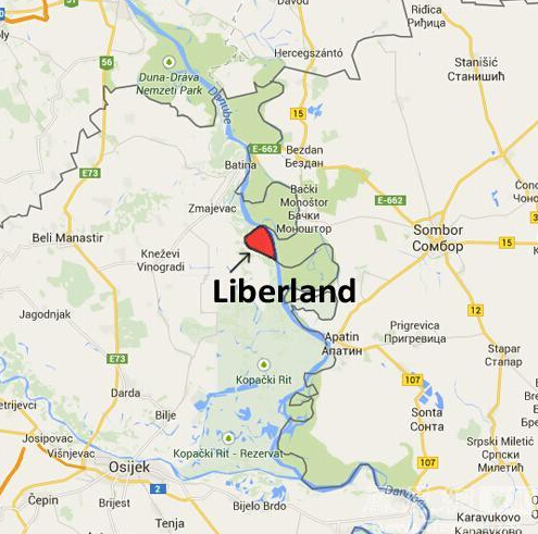 Liberland所在位置(45°46'N 18°52'E)