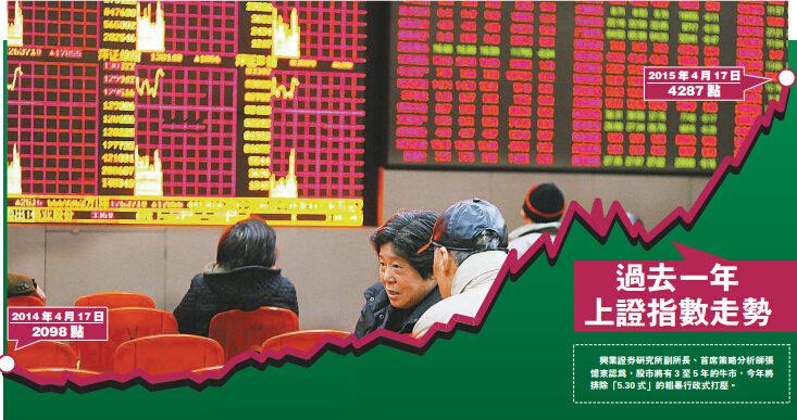 近期中国股市依旧「牛蹄狂奔」,上证指数已经稳稳站上4000点。但在火爆股市的背后,却是中国经济下滑的不争事实。国家统计局近期公布的经济数据显示,一季度GDP同比增长7%,创6年新低,可见中国经济正在经历着痛苦的转型期。一方面是下行压力加大的中国经济,一方面是不能成为经济晴雨表的火爆股市,让很多人疑惑是什麽原因形成了本轮牛市。而有一种较主流的看法是,政府要通过牛市的财富效应来对冲债务以救中国经济。