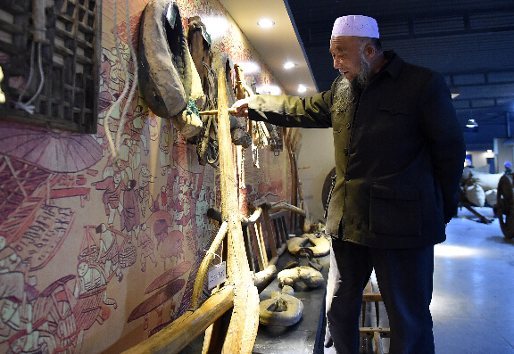 4月20日,一位老人在吳忠市農耕民俗博物館參觀。