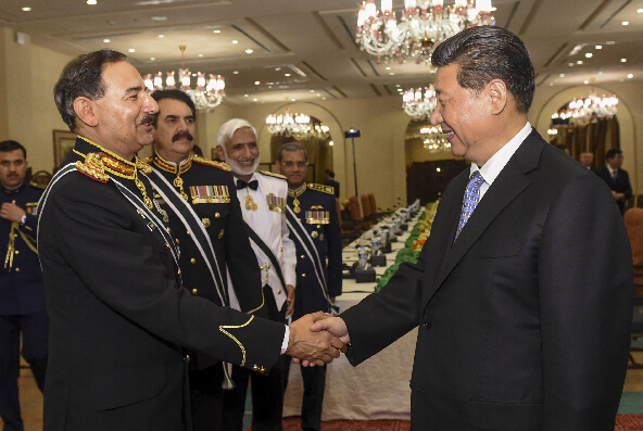 习近平在伊斯兰堡会见巴基斯坦陆、海、空三军参谋长等军方领导人。新华社